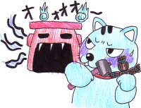 ( ̄~ ̄;)ここはひとつ、きぐるみで親密感をだしておきますかニャ