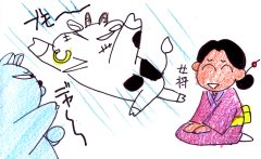 Σ( ̄□ ̄;) 百戦錬磨、無敗の牛が出てきて、
