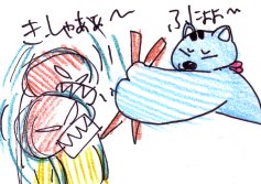 飼い主2:「お・た・ぎ だって!(読めねぇ・・・)」