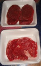 ヒレステーキ2枚、ロースステーキ1枚、牛角のたれ