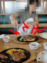 飼い主2:「あつ熱あつ熱あつ熱!あぶら跳ねすぎ!(ノーマルのハンバーグ(200g)のみ)」