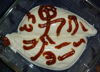 飼い主2:「変な形の豆腐に田楽味噌で落書じゃ!」