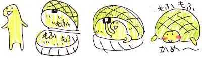 (ノ ̄∇ ̄)ノ カメさんはいいですニャ~♪もふもふした自宅があって♪