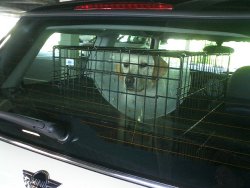 助手席倒して乗せてるのかな?206なら後部座席倒すだけで大型ケージOKです。エリザベスカラーをしているところを見ると術後か治療中のようですね。おだいじに。