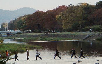 Σ( ̄□ ̄;)水の上をスタスタ歩いていますニャ!