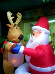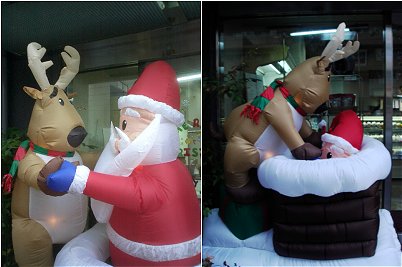 (ノ ̄∇ ̄)ノ 飼い主ぃ!サンタとトナカイが仲良くダンスしてますニャ♪