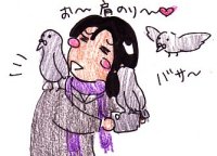 (ノ ̄∇ ̄)ノ にゃにゃ!飼い主!肩乗り鳩ですニャ♪