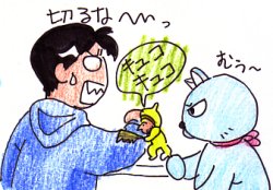 飼い主1:「いや、そう言われましても・・・痛ててて!」
