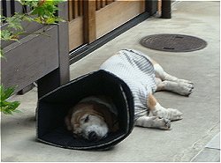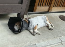 飼い主1:「えらいでかいエリザベスカラーだな♪」